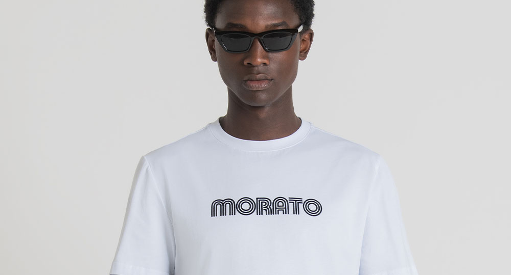 Antony Morato erkekler krem %100 pamuklu, basquiat desenli normal kesim tişört Giyim 28JN2215